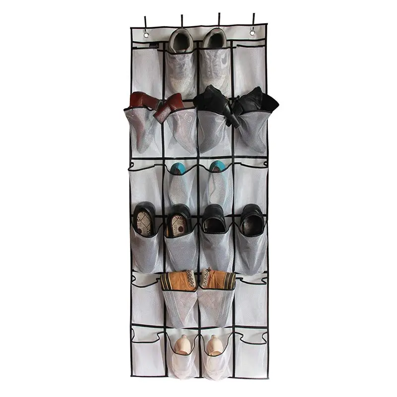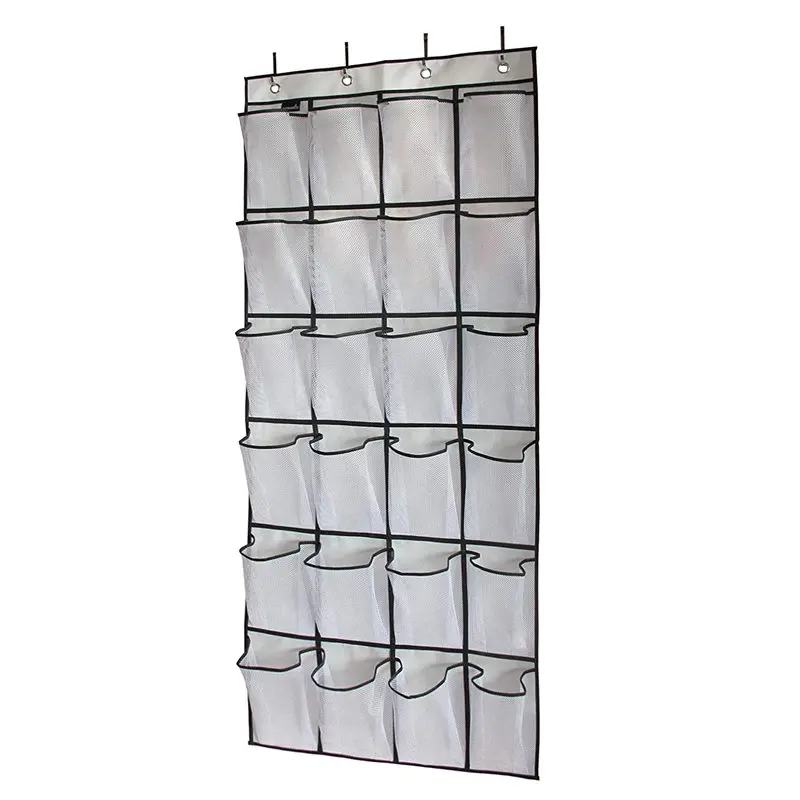 Over The Door Shoe Organizer 24 Large Mesh Pockets White